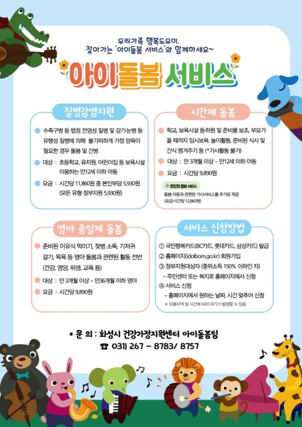 한편, 화성시는 코로나19로 인한 수요 증가에 대비해 올해 아이돌보미 29명을 충원했으며, 현재 총 227명이 활동 중으로 지난 7월 기준 총 928명의 아동이 아이돌봄서비스를 이용했다.