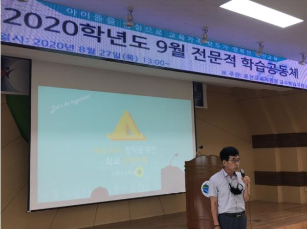 경기도포천교육지원청(교육장 심춘보)은 8월 27일(목) 포천 관내 교(원)감 51명과 교육전문직 12명을 대상으로‘학교자치 및 민주적 회의 문화 디자인 연수’를 진행하였다.