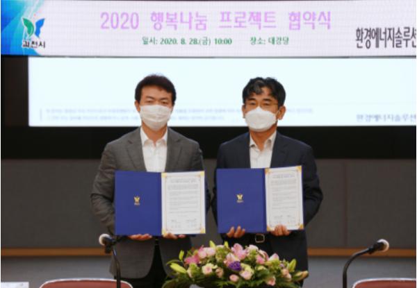 [KNT한국뉴스타임] 과천시는 28일 시청 대강당에서 환경에너지솔루션(주)(구 코오롱환경에너지)와 기업의 지역사회 공헌활동 활성화를 위한 ‘2020 행복나눔 프로젝트’ 협약식을 가졌다.