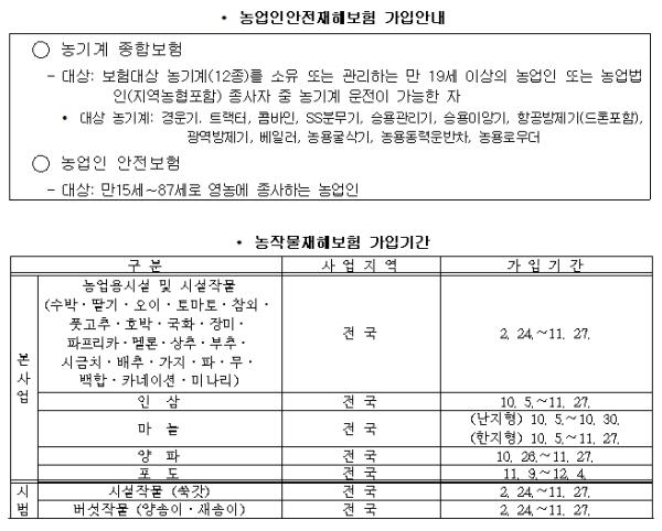 농업인안전재해보험 및 농작물재해보험은 가까운 지역 농협에 방문하여 가입하면 된다.