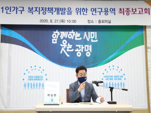 용역에 참석한 박승원 광명시장은 “광명시 인구의 약 30% 차지하고 있는 1인 가구의 지원에 관한 정책을 종합적이고, 체계적으로 수립하는 것이 무엇보다도 중요하며, 연구용역결과를 토대로 향후 우리시 1인 가구 정책기본계획 수립에 만전을 기해달라”고 당부했다.