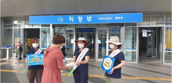 의정부시(시장 안병용) 의정부1동 행복마을관리소 지킴이들이 8월 28일 코로나19 확산 방지를 위한 마스크 착용 캠페인에 나섰다.