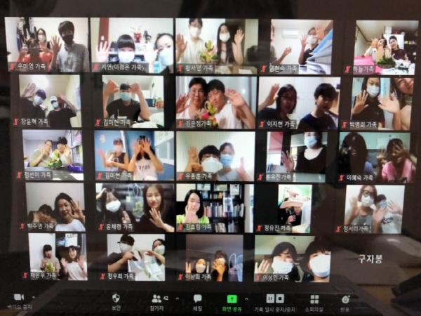 이번 행사는 코로나19 여파로 어려움을 겪고 있는 독거어르신들을 응원하기 위해 ‘공기정화 나무액자 만들어 전달하기’ 활동 일환으로 총 40가족, 82명이 화상회의 프로그램을 사용하여 참여했다.