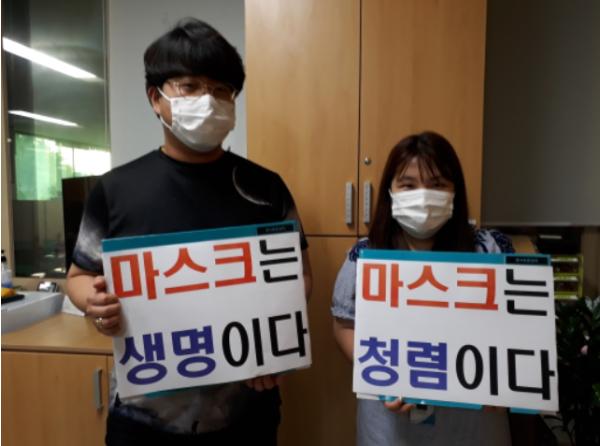 [KNT한국뉴스타임] 안성시 가족여성과는 8월 마지막 주를 청렴주간으로 정하고 ‘청렴한 마스크 쓰기로 코로나-19 극복을!’ 이라는 주제로 올바른 마스크 착용 메시지를 전달했다.