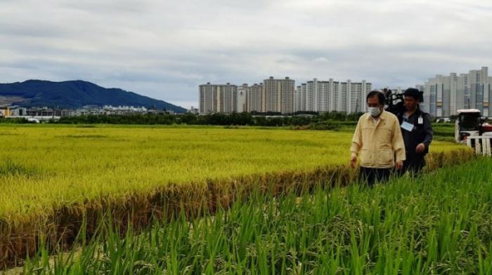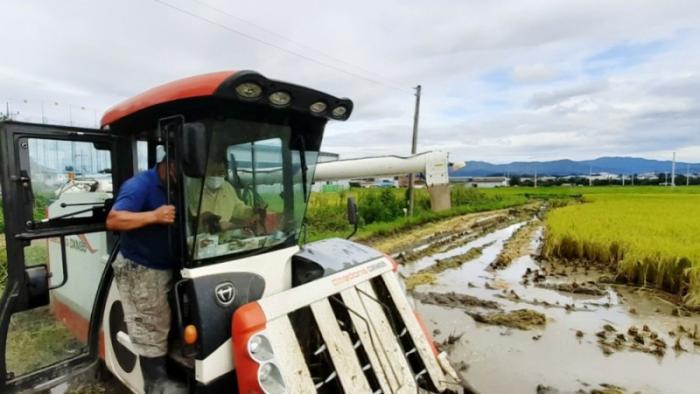 [한국뉴스타임=명기자] 31일 포천시 (박윤국 시장)는 선단동 이영규 농가에서 첫 벼베기를 시작하였다.박시장은 첫 벼베기 수확현장을 방문하여 농가의 노고에 대한 위로와 수확의 기쁨을 함께하며 콤바인 벼베기에 직접 참여하였다.