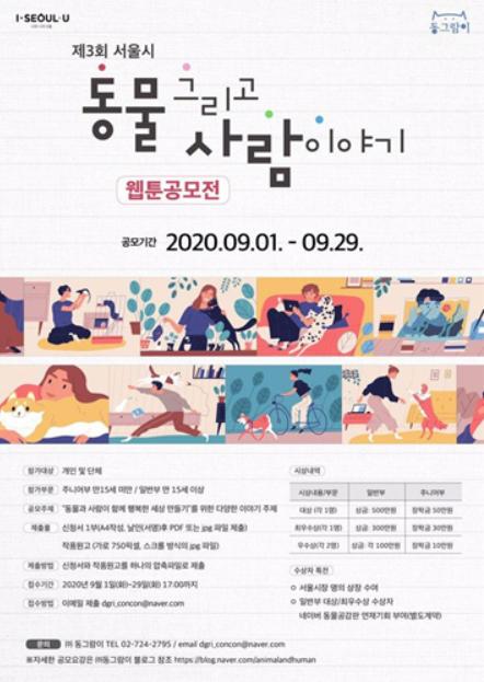 [KNT한국뉴스타임] 서울시는 네이버 ‘동물공감’판 운영자 ㈜동그람이(대표 김영신)와 함께 제3회 서울시 ‘동물 그리고, 사람이야기’ 웹툰 공모전을 9월 1일부터 29일까지 한 달 동안 개최한다.