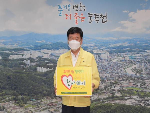 동두천시민들과 전 국민이 함께 자발적 기부와 나눔 행사를 기념하기 위해 매년 열리는 천사 마라톤 대회가 올해는 코로나19 확산으로 취소되어 “희망나눔 챌린지” 행사로 변경하여 코로나19로 힘든 시기를 보내고 있는 시민들에게 격려와 감사의 후원 행사를 진행하고 있다.