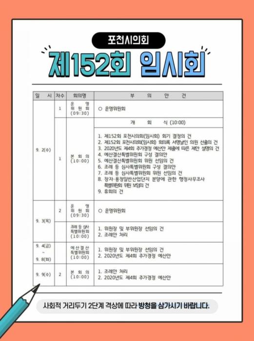 이번 포천시의회 152회 임시회 회기는 오는 9일까지 이다.