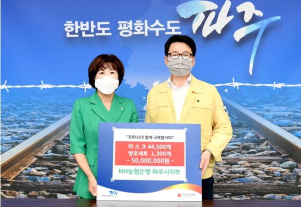 [KNT한국뉴스타임] 파주시는 NH농협은행 파주시지부가 코로나19 극복을 위한 ‘착한 나눔운동’에 동참했다고 밝혔다.