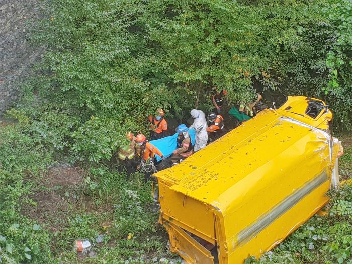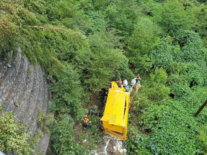 [한국뉴스타임=명기자] 2일 오전 10시경 가평군 북면 화악리에서 지정 폐기물 운반차량이 전신주를 들이박고 10m 아래 계곡으로 추락하는 사고가 발생했다. 신고를 접한 가평소방서 (서장 김전수)는 119구조대가 도착하여 운전자 구조하여 응급처치 후 병원으로 이송하였다고 밝혔다.