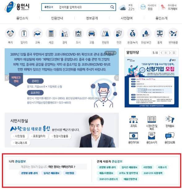 [KNT한국뉴스타임] 용인시는 3일 시 홈페이지를 개선해 방문자들이 원하는 정보를 쉽고 빠르게 찾을 수 있도록 빅데이터를 활용한 맞춤형 서비스를 제공하고 있다고 밝혔다.