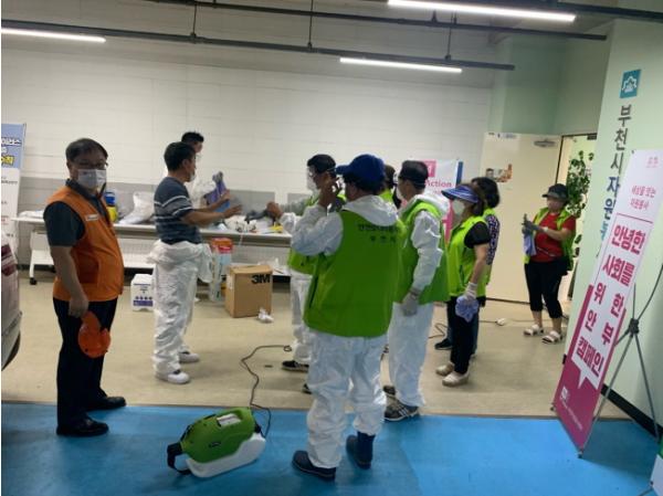 방역은 ‘2020 코로나19 대응 방역 봉사활동 계획’의 일환으로 부천시자원봉사센터의 주관하에 실시됐다. 이날 활동에는 부천시 안전모니터 봉사단(회장 장석산)과 대한적십자 부천지구협의회(회장 이순길) 등 지원단 소속 단체와 소독제 전문업체인 씨엠에스코리아(주)(대표 이정호)가 참여했다.