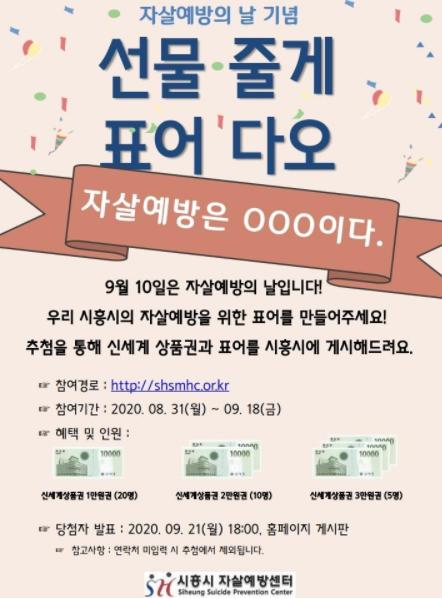 시흥시는 매년 9월 10일 자살예방의 날을 기념하기 위해 다양한 행사 및 캠페인을 진행해왔다. 그러나 올해에는 코로나19가 8월 15일을 기점으로 재확산되는 추세를 보여 아쉽게도 자살예방의 날 기념행사를 개최하기가 어려워졌다.