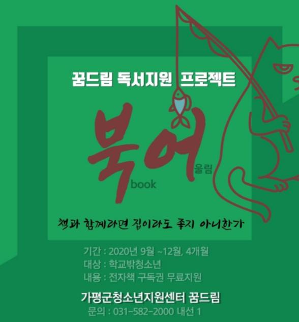 [KNT한국뉴스타임=가평] 가평군청소년지원센터 꿈드림은 학교 밖 청소년에게 코로나 장기화로 인한 고립감 해소에 도움을 주고 집에서도 다양한 문화활동 및 체험을 접할 수 있는 기회를 제공하기 위해 전자책 구독권 제공 및 온라인 강좌 수강 등 다양한 비대면(UNTACT) 프로그램을 운영하고 있다.