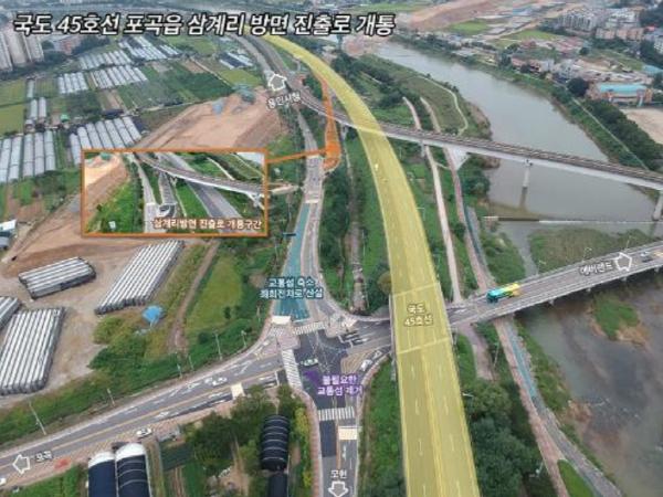[KNT한국뉴스타임] 용인시는 교통정체 등의 이유로 개통을 연기해왔던 국도 45호선 포곡읍 삼계리 진출로를 9일 오전 10시 개통한다고 밝혔다.