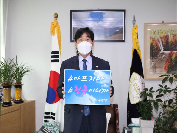 [KNT한국뉴스타임] 구리시의회 김형수 의장이 9월 10일 경기도청년생명사랑 캠페인 ‘아프지마, 청춘 챌린지’에 동참하여 청년에게 희망 메시지를 전달했다.