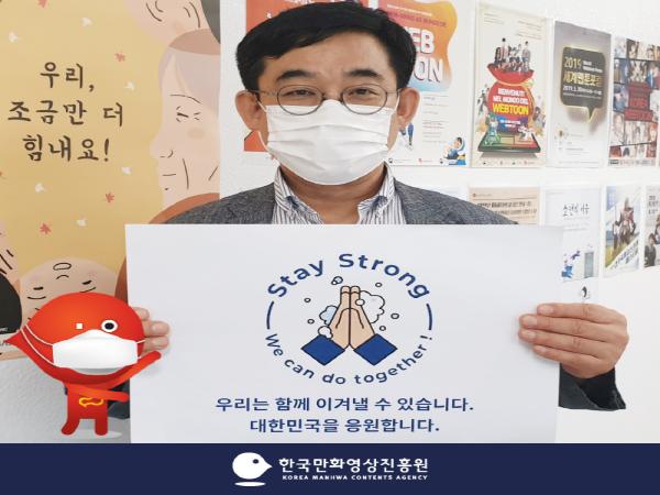 한국만화영상진흥원(원장 신종철)이 코로나19의 극복과 빠른 종식을 응원하는 ‘스테이 스트롱(stay strong)’ 캠페인에 동참했다.
