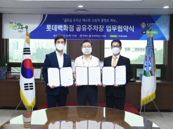 이를 위해 시는 지난 10일 구리시청 민원상담실에서 공유주차 운영을 위한 롯데백화점과 주차 전문업체인 ㈜하이파킹과 업무 협약식을 체결했다.