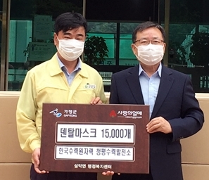 [가평뉴스타임=명기자] 11일 한국수력원자력(주) 청평수력발전소 (소장 김병림)는 관내 코로나-19 예방을 위해 설악면행정복지센터 (면장 박철선)에 덴탈마스크 15,000개를 기탁하였다.