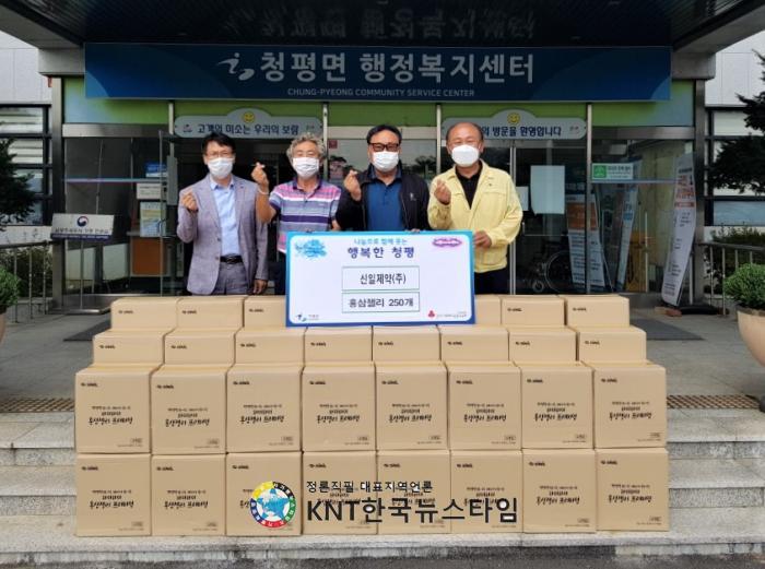 이기학 청평면장은 “지속적으로 청평면의 복지 대상자들을 위해 도움을 주시는 신일제약(주)에 감사하다. 독거어르신께 잘 전달하겠다.”며 고마움을 전했다.