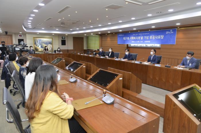 포천시는 15일 시청 시정회의실에서 제21회 사회복지의 날을 기념하여 포천시 사회복지 유공자들에 대한 표창창 수여식을 진행했다.
