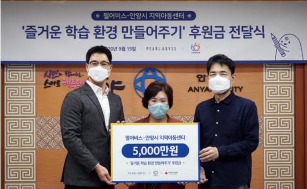 [KNT한국뉴스타임] 경기도 안양시는 게임전문 업체인 ㈜펄어비스가 관내 지역아동센터를 대상으로 하는 ‘즐거운 학습 환경 만들어 주기’ 지원 사업에 5천만원을 후원했다고 16일 밝혔다.