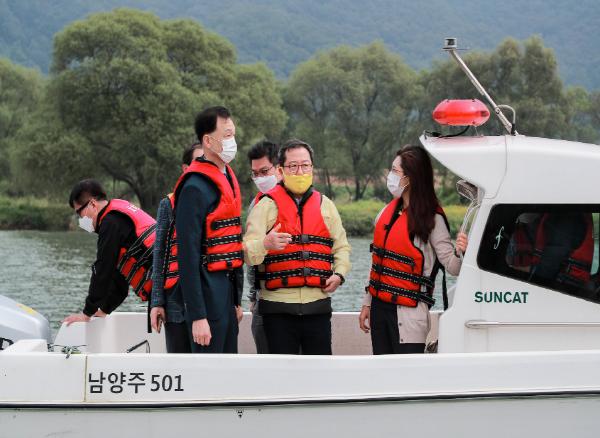 [KNT한국뉴스타임] 조광한 남양주시장은 16일 팔당 상수원 수질오염실태 점검과 계속되는 코로나19 사태 등으로 어려움을 겪고 있는 사업장 피해현황 등을 살피기 위해 현장점검에 나섰다.