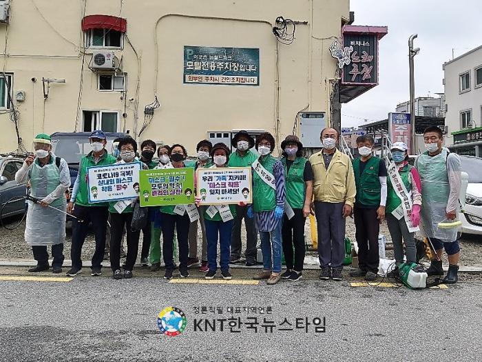 [가평뉴스타임=명기자] 16일 가평군새마을지도자 청평면협의회(회장 손종기)와 새마을부녀회(회장 양화자) 회원 20여명은 청평면 관내 다중집합장소와 상가에 코로나19 방역을 실시하였다.
