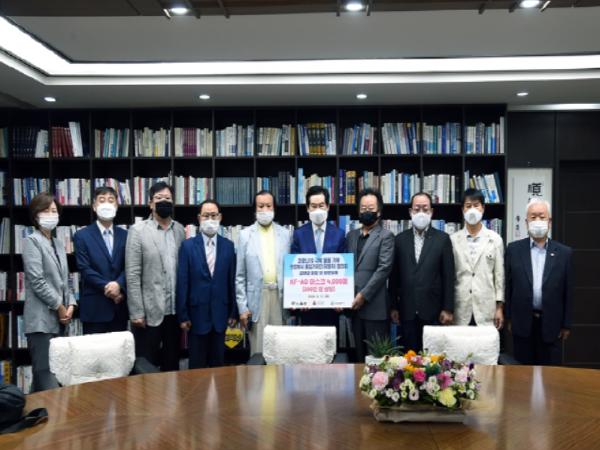 [KNT한국뉴스타임] 경기도 의정부시(시장 안병용)는 9월 17일 의정부시 출입기자단 협의회 22개 회원사 일행이 시청을 방문해 KF-AD 마스크 4,000매 기탁했다고 밝혔다.