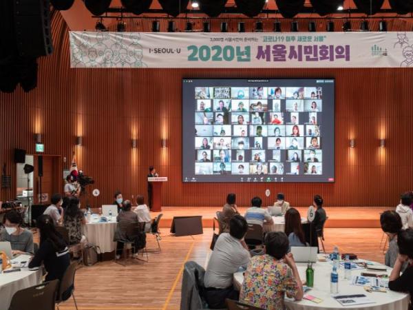 [KNT한국뉴스타임] 서울시가 코로나19로 촉발된 대전환의 시대를 예측하고 시민 집단지성으로 새로운 서울을 준비하기 위한 100일간의 대장정을 마무리하는 ?2020 서울시민회의? ‘시민총회’를 열어 Top10 정책을 뽑는다. 19일(토) 14시에 서울시청 다목적홀에서 온?오프라인 동시에 개최된다.