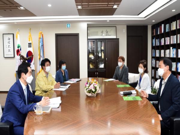 의정부시(시장 안병용)는 9월 17일 수도권 코로나-19 바이러스 확진사례로 인하여 집합금지 명령이 내려진 유흥주점 운영업주들의 고충을 듣고 지원방안을 논의코자 유흥음식업중앙회 의?양 지부(지부장 임문수)임원진들과 회동을 가졌다고 밝혔다.