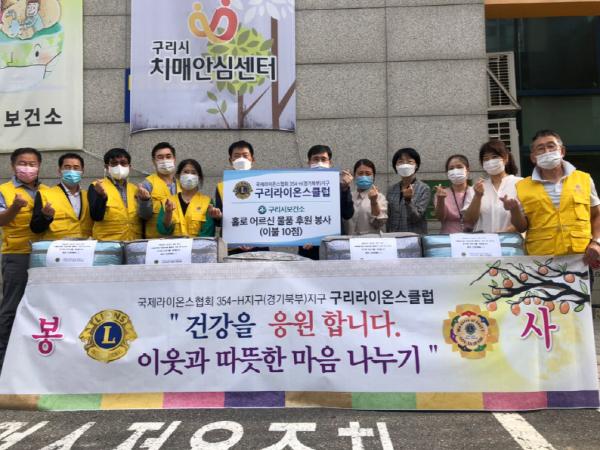 [KNT한국뉴스타임] 경기도 구리시(시장 안승남)는 17일 구리보건소 광장에서 구리라이온스클럽 박병선 회장 등 관계자 12명이 참석한 가운데 관내 취약계층 홀몸 어르신들에게 전달할 100만원 상당의 이불 전달식을 가졌다고 밝혔다.