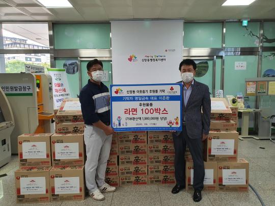 이춘환 명일금속 대표는 기탁식에서 “코로나19로 지친 아동들에게 조금이나마 용기를 주고, 응원을 하고 싶어 라면을 기탁하게 됐다”며, “아이들이 살기 좋고 행복한 마을 신장동이 됐으면 좋겠다”고 말했다.