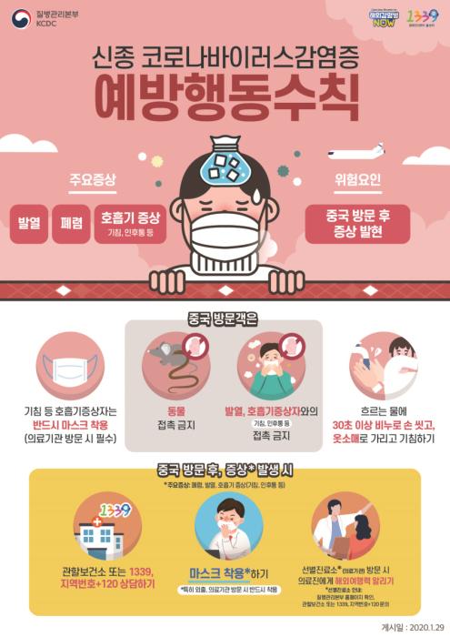 신종코로나바이러스 감염증을 예방하기 위해서, 비누로 30초 이상 손씻기, 손 소독제를 사용해 개인위생을 철저히해야 하며 외출 시 마스크를 착용하는 것이 중요하다.