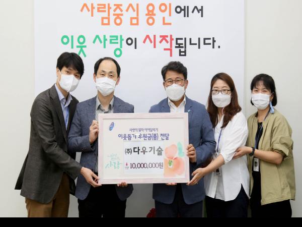 [KNT한국뉴스타임] 용인시는 관내 IT관련 기업 ㈜다우기술 박광호 차장 등 관계자 2명이 시청을 찾아와 지역 어려운 이웃의 난방비 지원에 써 달라며 성금 1000만원을 기탁했다고 밝혔다.