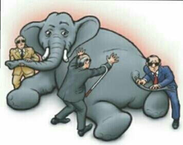 그러나 반대로 개인의 다양한 판단을 유보하고 특정인의 뜻에 따라 공통으로 ’코끼리는 둥글다‘라고 결론 내린다면 우리는 그것을 독재 또는 경찰국가라고 한다. 지구가 둥글고 태양 주위를 돈다고 주장한 갈릴레오 갈릴레이도 지구가 평평하다고 주장하는 그 당시 우매한 기득권들이 종교재판에 넘긴 것은 누구나 다 아는 사실이다.