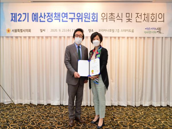 서울특별시의회(의장 김인호)에서는 시의회의 예산정책기능 강화를 위해「예산정책연구위원회」를 구성하고, 2020년 9월 23일「제2기 예산정책연구위원회」위원들에게 위촉장을 수여하였다.