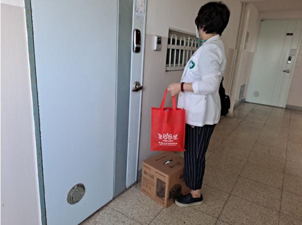 코로나19에 상대적으로 취약한 기저질환자와 독거노인은 감염예방을 위해 비대면 방문건강 관리서비스가 필요해 외출이 부담스러워 실내 위주의 생활을 하고 있는 대상자에게 1차로 비대면 전화 상담을 하고 2차로 가정방문을 통해 건강관리에 꼭 필요한 물품을 빨간 가방에 골고루 담아 제공하고 있다.