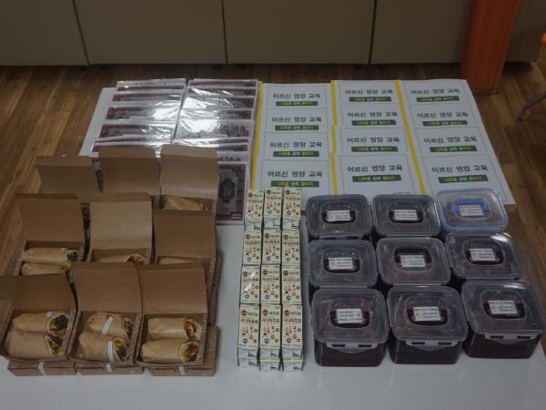 어르신을 위한 식생활 안전가이드, 고혈압 식사 원칙 등 다양한 영양정보와 보건소 영양사가 직접 만든 불고기 또띠아롤, 시니어 두유, 곶감호두말이, 그린요거트, 카프레제 샐러드, 야채 칩 등이 제공된다.