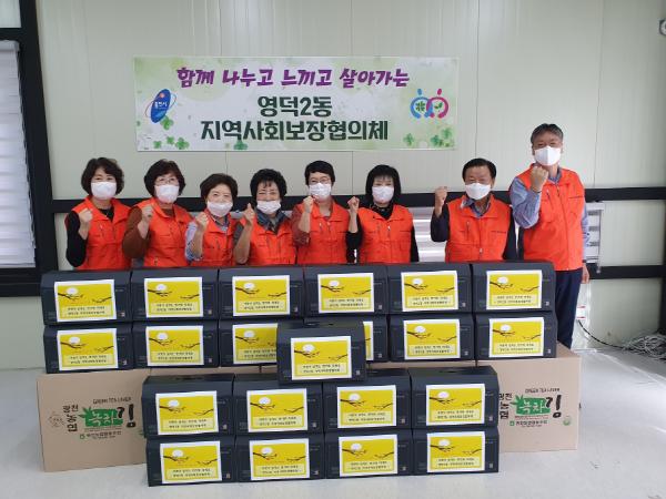 영덕2동 지역사회보장협의체는 취약계층 60가구를 방문해 쌀 10kg짜리 30포와 김선물세트 30개를 전달했다.