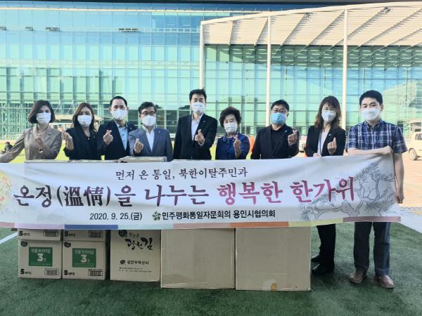[KNT한국뉴스타임] 민주평화통일자문회의 용인시협의회는 지난 25일 용인시청에서 북한이탈주민 대상 추석맞이 성품 나눔 행사를 가졌다.