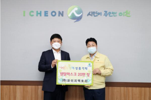 [KNT한국뉴스타임] 이천시는 ㈜와이지팩토리에서 덴탈마스크 20만 장을 전달하였다고 밝혔다.