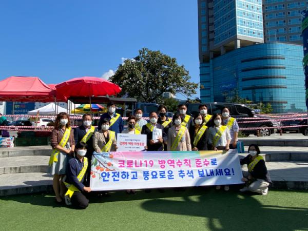 또한, 추석 연휴기간 제수용품 구매, 가족 식사 등 이용객이 증가할 것으로 예상되는 각 시장 점포 및 시장이용객에 감염병 예방 홍보물품(마스크, 마스크 스트랩 등)을 배부하고 외출 자제 독려 및 부득이 외출 시에는 반드시 마스크를 착용할 것을 당부하여 추가 지역확산방지에 총력을 기울였다.