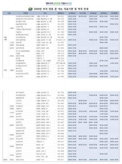 보건소는 응급 환자 및 대형사고 발생 시 신속한 대처를 위해 지역응급의료센터 및 종합병원의 응급실 운영을 강화하고, 의료 공백을 최소화하기 위한 문 여는 의료기관, 약국을 지정·운영할 계획이다.