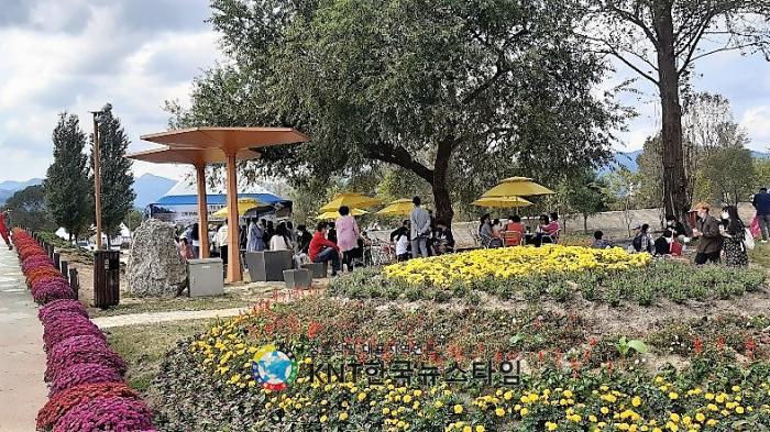 코로나19 여파로 비대면 추석 명절로 인해 고향을 방문하지 못한 가족단위 방문객이 눈에 뛰었다. 지난 8월 집중 호우로 침수되었음에도 불구하고 가평군 공직자와 자원봉사자들의 노력으로 불과 2달여만에 아름다운 꽃들이 만개 하였다.