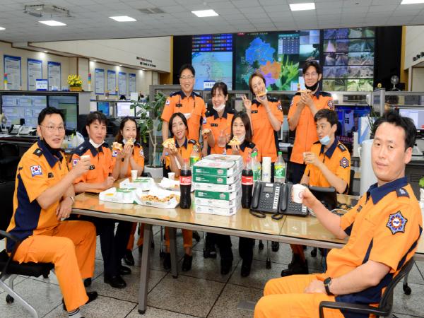 경기도 소방재난본부는 이재명 경기도지사가 비상근무에 돌입한 직원들을 위해 피자 100판과 음료수 등 위문품을 전달했다고 30일 밝혔다.