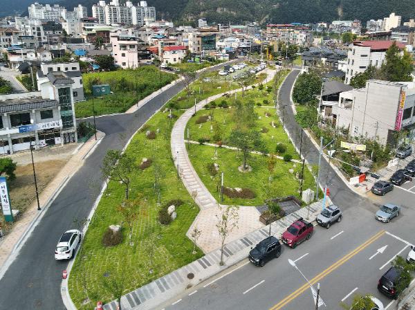 총 9,480㎡ 면적에는 3,520㎡의 공원과 산책로, 주차장 57면이 조성됐다. 또 도시계획도로 4개소 430m와 소나무 및 팥배나무 등 조경식재 10여종과 휴게그늘막 1식 등이 들어서 도심속 쉼터와 아름다운 공간을 제공했다.