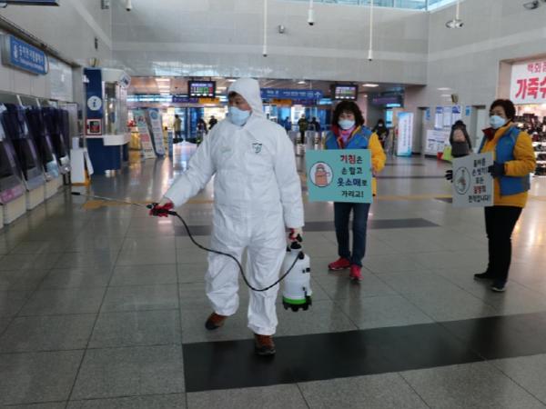 의정부시자원봉사센터는 의정부시지역자율방재단과 함께 관내 다중이용시설을 중심으로 방역소독과 코로나-19 예방수칙 알리기 캠페인을 실시해 감염병 확산방지에 총력을 기울였다.