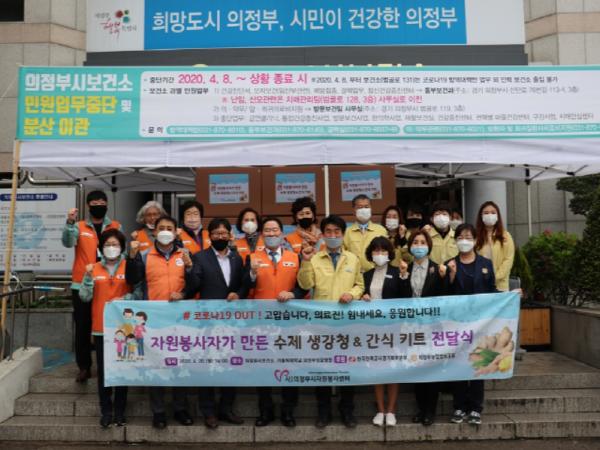 시민의 왕래가 많은 의정부역, 회룡역, 행복로 등에서 시민들에게 마스크 줄과 코로나-19 예방 행동수칙 홍보지를 배부하고, 인근 상인들에게는 스프레이형 손소독제와 코로나-19 예방 행동수칙 홍보지를 배부했다.
