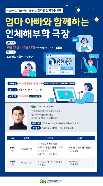 수원시정연구원이 운영하는 수원시민자치대학은 10월 중 ‘서울대 미대와 함께하는 창의예술교육’ 온라인 프로그램을 시범 운영한다.